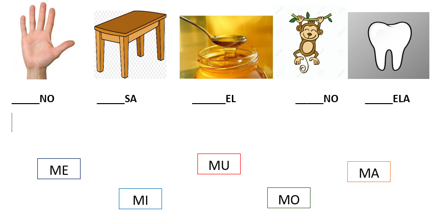 4) ARMÁ PALABRAS CON ESTAS SÍLABAS. TODAS DEBEN TENER ALGUNA SÍLABA CON M.